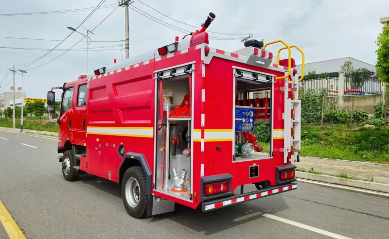 水罐容積:6m3(實(shí)際載水量6000kg),罐體采用優(yōu)質(zhì)碳鋼(底板4mm/側(cè)板3mm),內(nèi)部防腐處理。注:部分車(chē)型采用水+泡沫雙罐設(shè)計(jì)(如:水4.2m3+泡沫液1.765m3)。