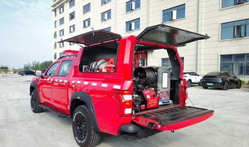 型號CB10/30,流量30L/S@1.0MPa,揚程120m可選高壓遠程供水泵(揚程500-800m,輸送距離5-8km)消防炮:P53型或PS30W,射程45-80m器材箱:鋁合金型材固定架,配備破拆工具、應急照明等模塊化裝備其他功能。