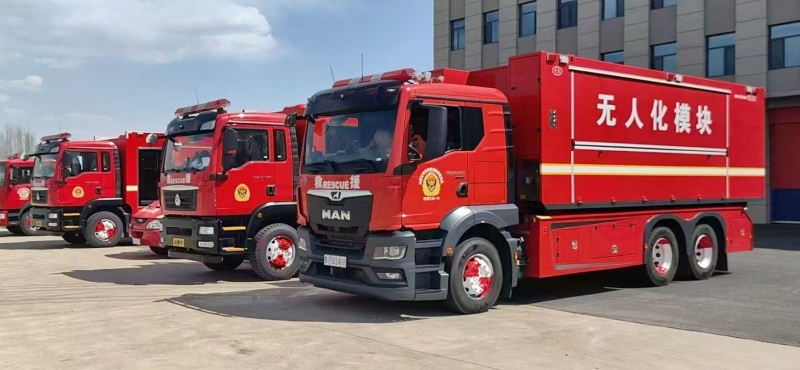 無人機(jī)與地面指揮中心實(shí)時(shí)信息聯(lián)動,配套專用消防車作為貯存和供給平臺,適用于高層建筑、化工火災(zāi)等場景。