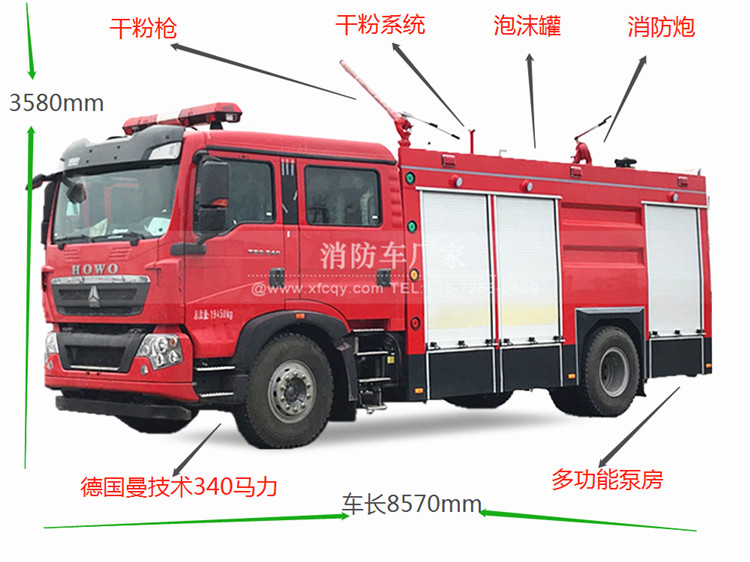 重汽T5G/8噸泡沫干粉聯(lián)用消防車