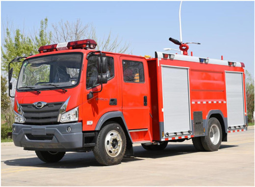 3.車輛兩側(cè)上方各配有3個(gè)紅藍(lán)爆閃燈及 3 個(gè)側(cè)照明燈,下方安裝安全標(biāo)志燈和側(cè)回復(fù)反射器(組合式),配有前、后示廓燈,兩側(cè)各一只轉(zhuǎn)向燈,乘員室、器材箱、泵房內(nèi)均裝有照明燈,并符合 GB4785 規(guī)定。